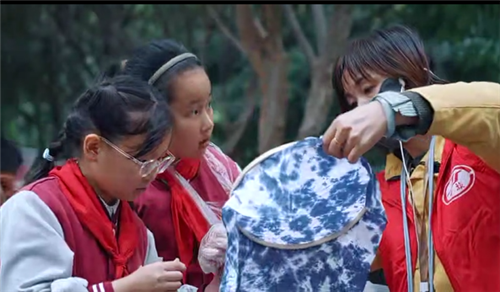 小“彩蝶”们动手又动脑,创意与传统撞出别样精彩。微景观台前,小巧的多肉、迷你的木屋在小“园艺师”手中渐成童话世界;扎染长桌旁,皱起的棉布、晕开的蓝白花纹让小“传承人”期待不已;彩绘泥人案头,圆润的泥坯、鲜艳的颜料被小 “艺术家” 勾勒成憨态笑脸;不倒翁熊猫制作区更热闹,圆滚滚的底座、毛茸茸的熊猫雏形吸引着小“巧匠”们,他们小心取材、认真拼装,让熊猫稳稳“站”起。小“彩蝶”们或细心搭配、或巧手扎结、或蘸色细涂、或专注拼装,时而端详素材,时而交流技巧,最后都捧着亲手完成的作品,开心合影留念。